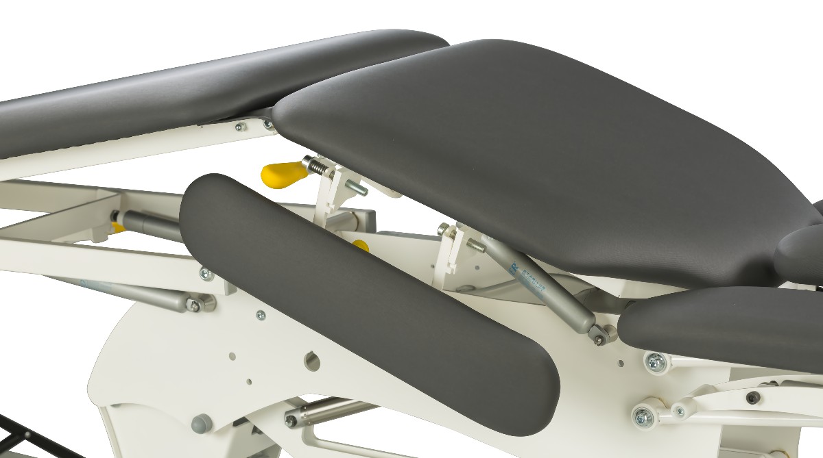 - mehr Behandlungsmöglichkeiten durch das 90° nach unten klappbare Kopfteil, und durch das nach unten verstellbares Fußteil